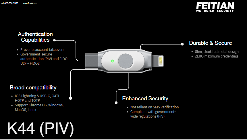 ePass FIDO2 USB-C + iOS Lightning Security Key (K44)